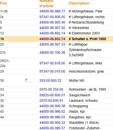 Interrupteur de sécurité pour souffleur gardena (voir fiche technique)