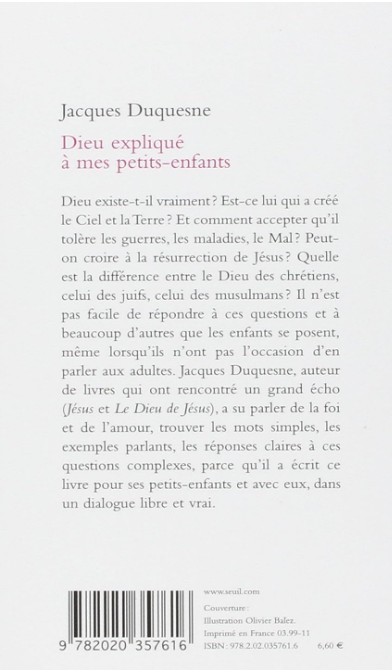 Dieu existe-t-il vraiment ? Est-ce lui qui a créé le Ciel et la Terre ? Et comment accepter qu’il tolère les guerres, les maladies, le Mal ? Peut-on croire à la résurrection de Jésus ? Quelle est la différence entre le Dieu des chrétiens, celui des juifs, celui des musulmans ? Il n’est pas facile de répondre à ces questions et à beaucoup d’autres que les enfants se posent, même lorsqu’ils n’ont pas l’occasion d’en parler aux adultes.