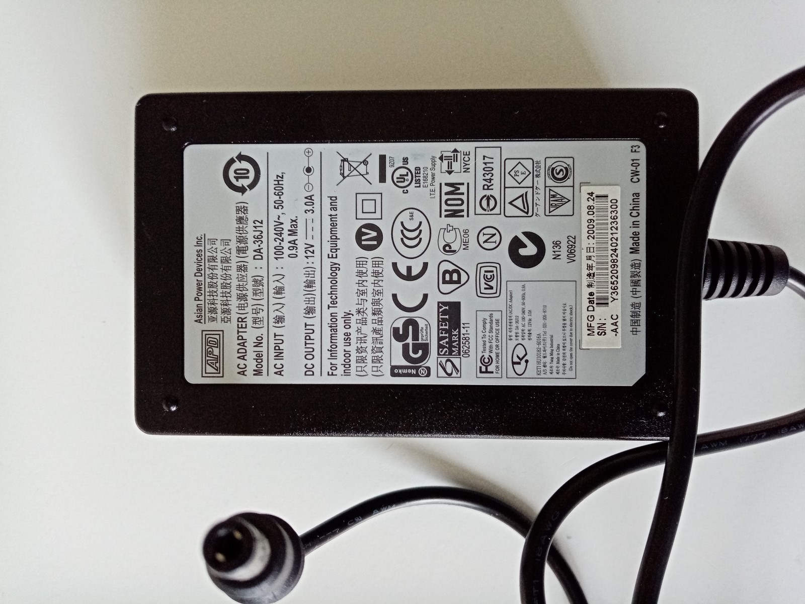 Out: 12V 3A DC